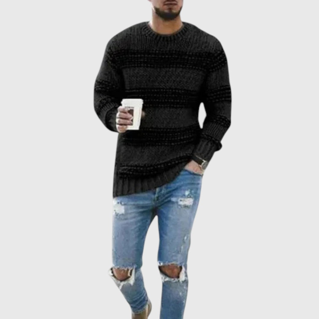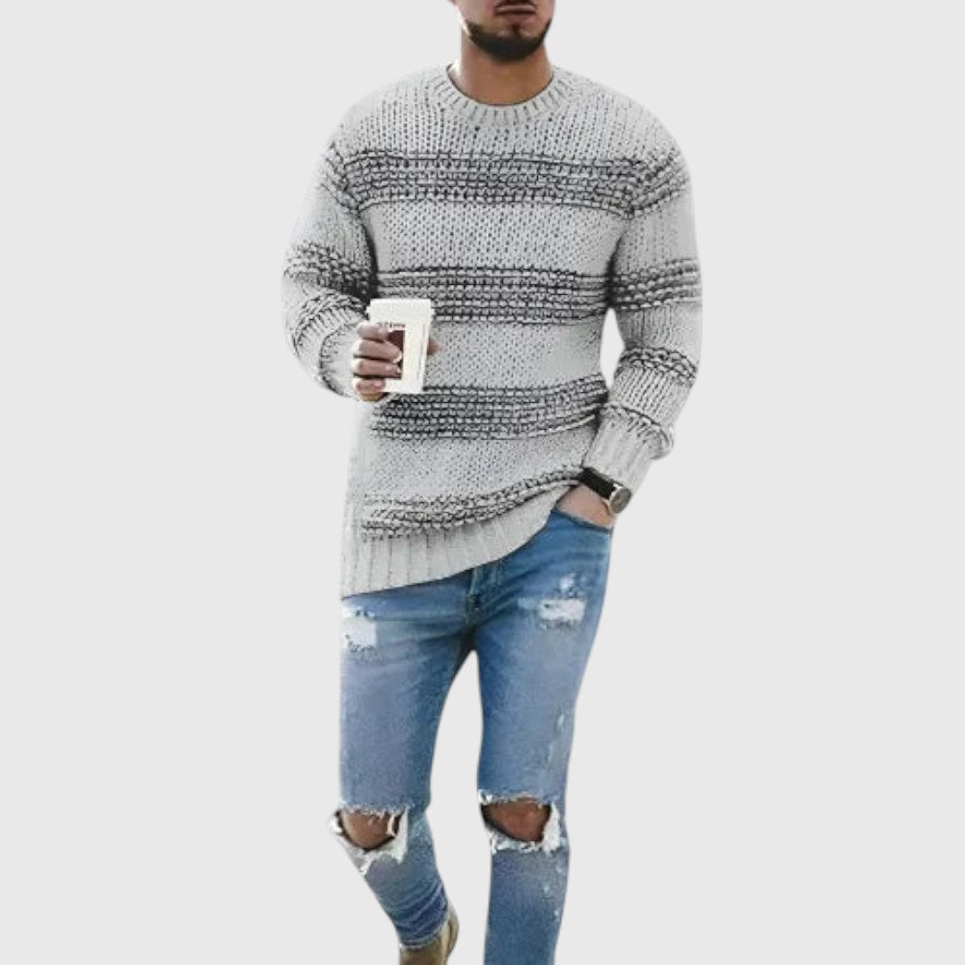 Svetr Darren kombinuje moderní pruhovaný vzor s uvolněným, pohodlným střihem—ideální pro zvýšení vašeho každodenního vzhledu, zatímco vás udržuje v teple a stylu. Jeho chunky design je ideální pro vrstvení, ať už jdete na procházku nebo si užíváte uvolněný víkend doma.