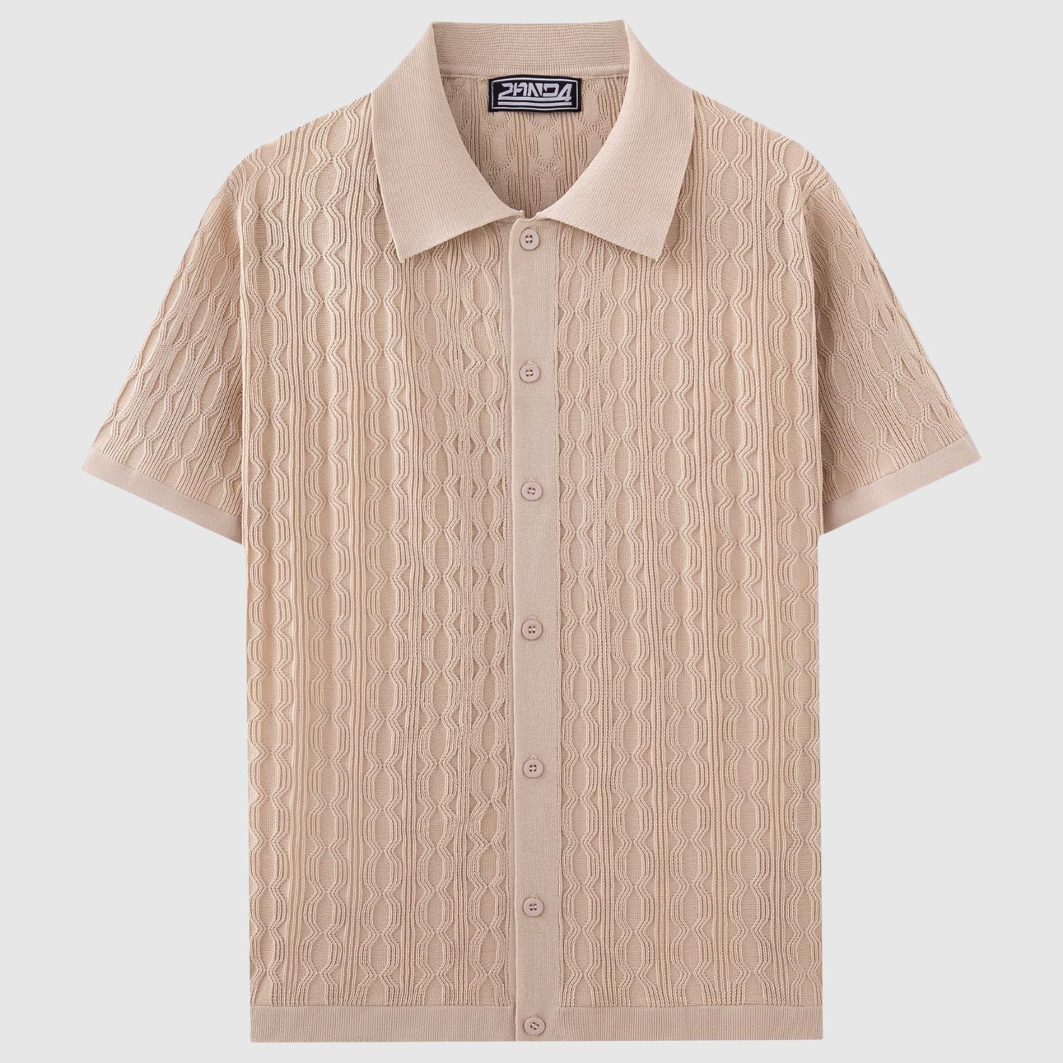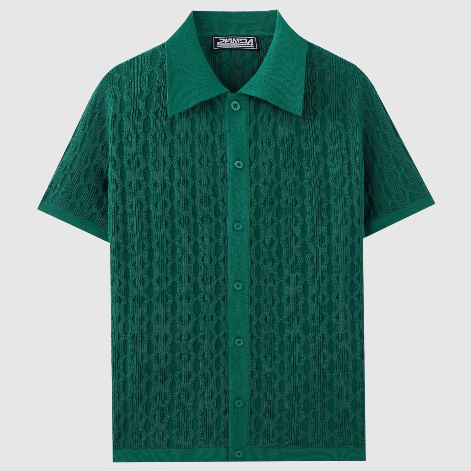 Tato pletená košile kombinuje letní lehkost s designem, který vyzařuje eleganci a styl. Její texturovaná, měkká a pružná tkanina dodává nenucenou sofistikovanost, zatímco volný střih a otevřený límec z ní dělají ideální kousek pro ty, kteří chtějí přirozeně vyniknout.