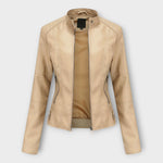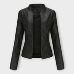Elegantní kožená bunda s moderní linií a nadčasovou estetikou