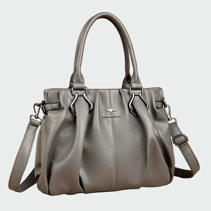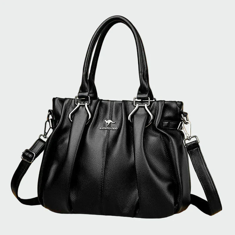 Elegantní dámská kabelka v černé barvě, s reliéfní texturou kůže a moderním designem s plisováním na přední straně. Disponuje dvojitými uchy pro pohodlné držení a odnímatelným nastavitelným popruhem pro nošení na rameni. Ideální volba pro každodenní použití, ale i pro elegantnější příležitosti, nabízí praktičnost a styl.