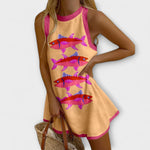 Udělej dojem s Mini šaty Anavée se vzorem sardinky – hravý prvek pro tvůj minimalistický styl. Unikátní vzor sardinky a vzdušná silueta dělají z těchto šatů dokonalý kousek pro dny na pláži, návštěvy trhů nebo neformální výlety.
