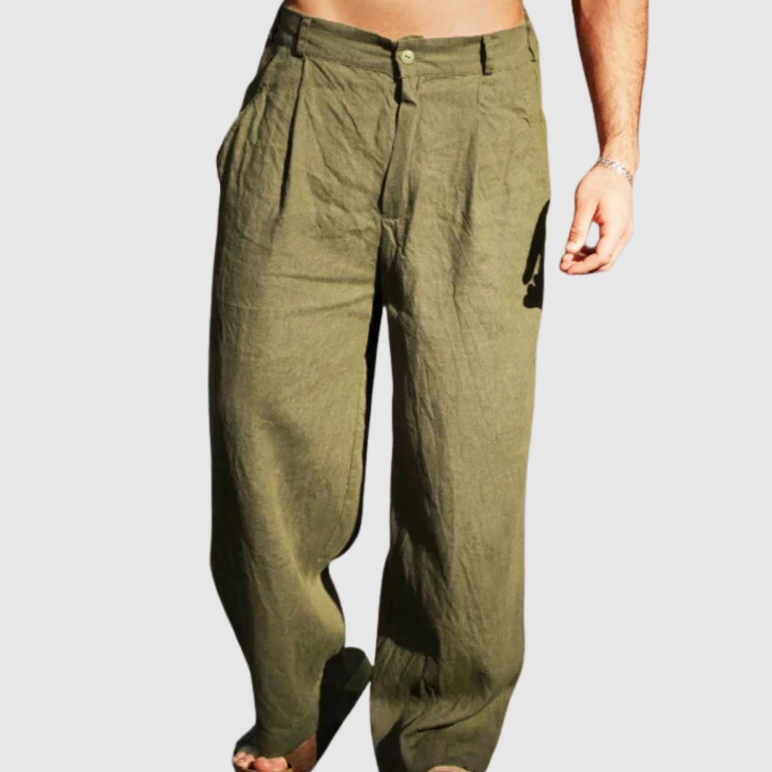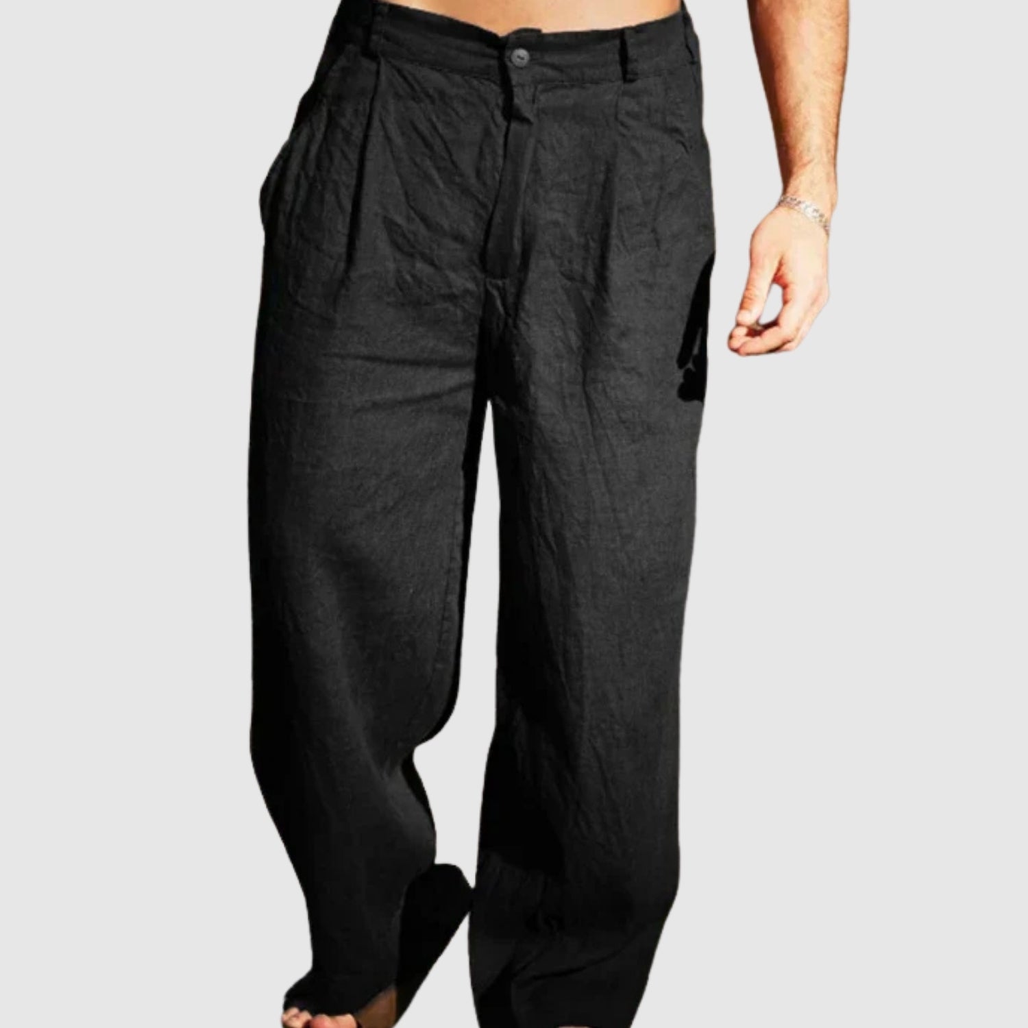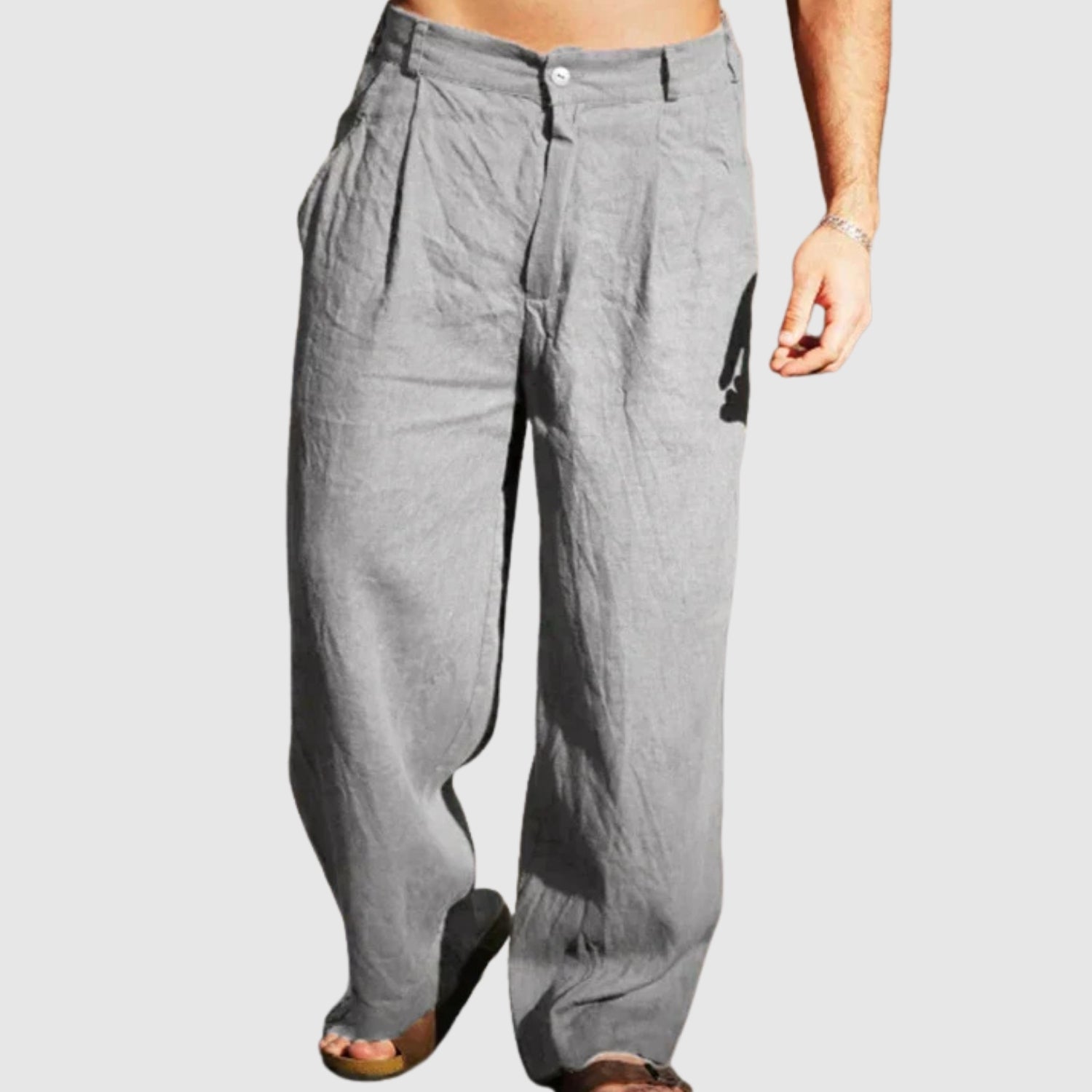Tyto lněné kalhoty s širokým střihem kombinují svěžest a styl pro ty, kteří hledají svobodu a sofistikovanost ve svém šatníku. Jejich plynulý design nabízí pocit lehkosti a pohodlí, ideální pro teplé dny, a dodává každému looku uvolněný a moderní nádech.