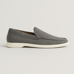 S hlubokým šedým tónem a měkkým, semišovým povrchem nabízejí tyto loafers diskrétní eleganci, která bez námahy přechází z dne do večera.