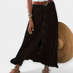 Lehká a elegantní, tato sukně vyzařuje diskrétní ženskost a nabízí flexibilitu pro každou příležitost. S mírně poloprůhlednou tkaninou a knoflíky vpředu se nosí od rána do večera s vhodným stylingem.