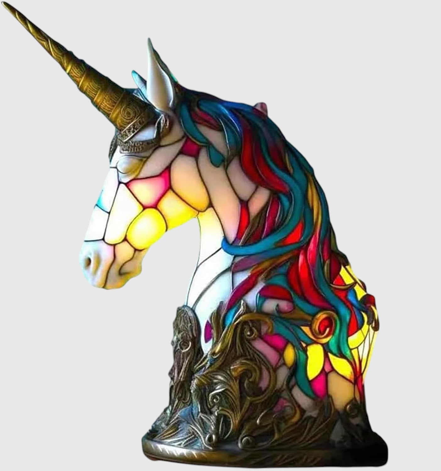 Přiveďte domů kouzlo s naší skleněnou lampou s jednorožcem. Její hravý design a jasné barvy jsou ideální pro ložnice, čtecí koutky nebo tvůrčí prostory.