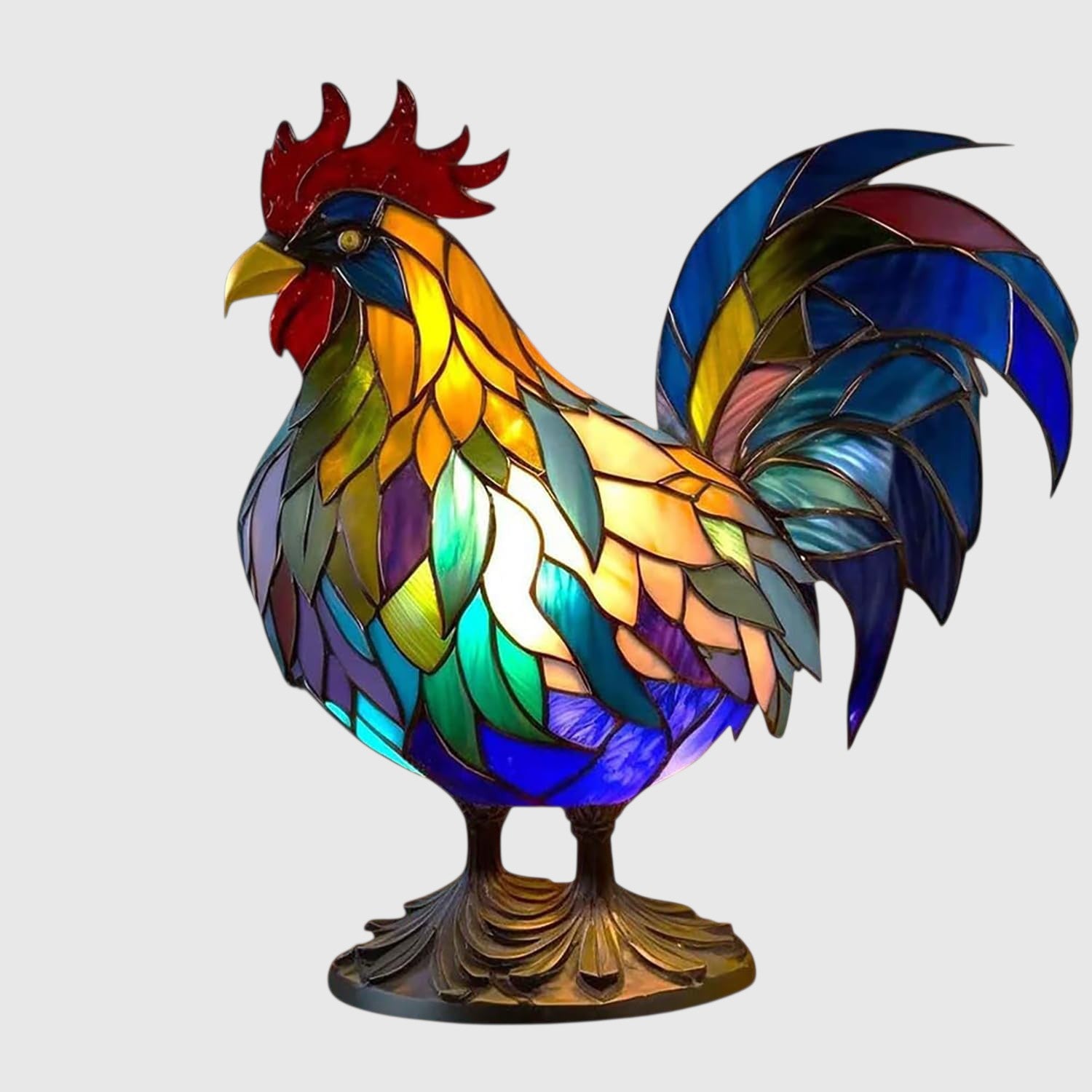 Přidejte barvu a osobnost svému prostoru s naší skleněnou lampou ve tvaru kohouta. Tento živý design přináší nádech venkovského kouzla do každé místnosti, ideální jako veselý akcent do kuchyní, obývacích pokojů nebo útulných koutů.