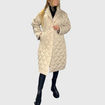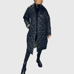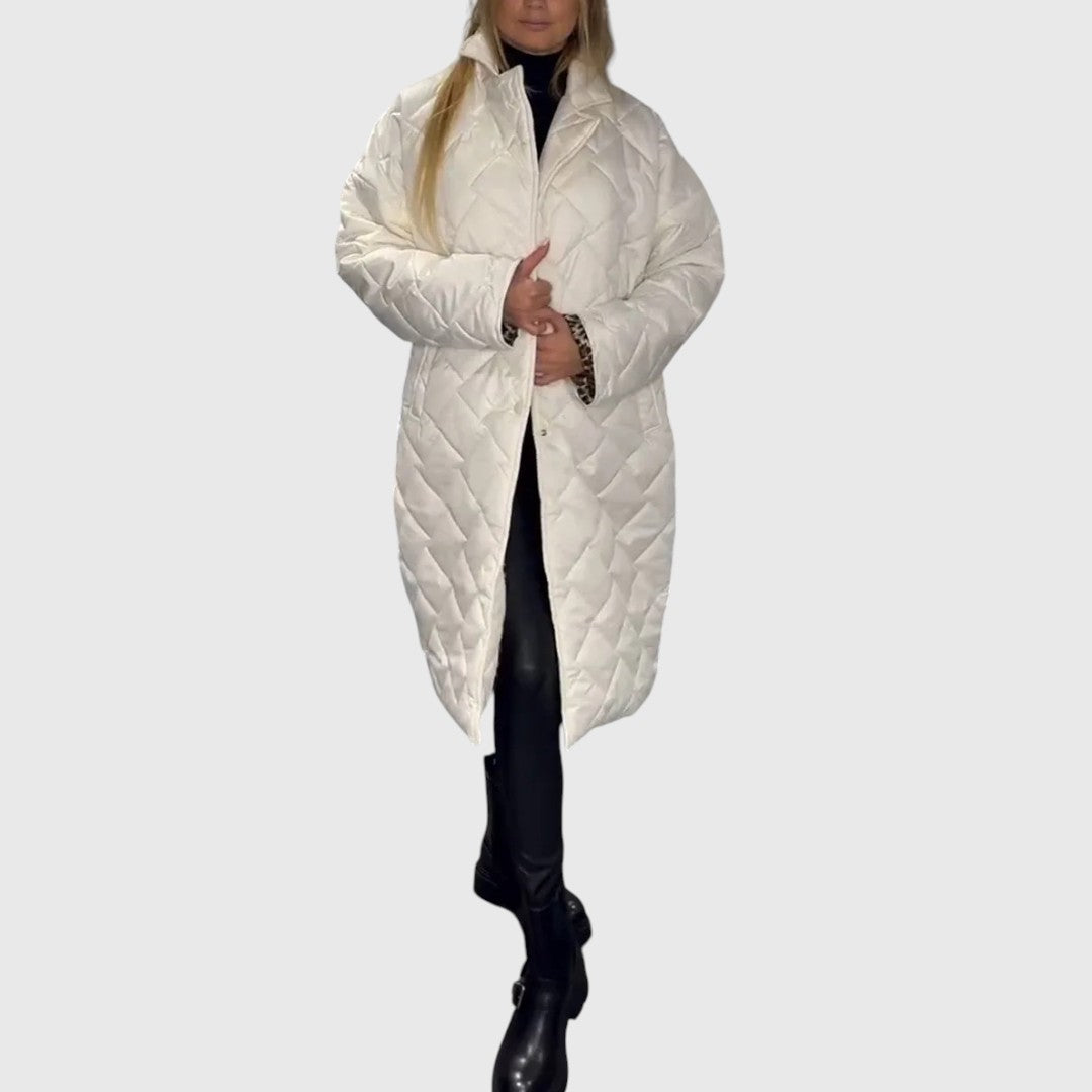 Prošívaný kabát, který spojuje nadčasovou eleganci s odvážným nádechem. Jeho jemný, minimalistický exteriér skrývá stylovou podšívku s leopardím vzorem, která se odhaluje na manžetách nebo uvnitř pro jedinečný styl, který vždy přitahuje pozornost.