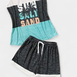 Tato lehká a hravá sada je přesně to, co potřebujete pro relaxační chvíle a stylovou dovolenou. Tričko s tropickým potiskem a odpovídající krátké šortky vytvářejí pohodlný a živý vzhled pro každou letní příležitost.