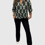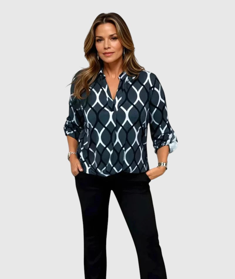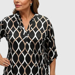 Dodejte svému šatníku eleganci a originalitu s halenkou Noor. Moderní grafický potisk dodává outfitu svěží a stylový vzhled, který snadno upoutá pozornost.
