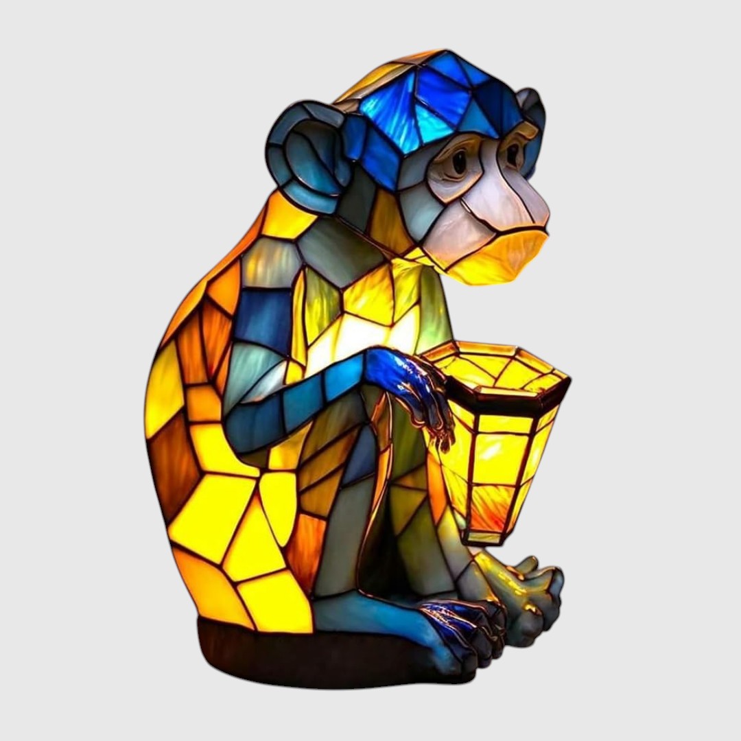Žlutý skleněný opičák s lampou na baterky je ideální způsob, jak transformovat váš prostor. Tento exotický kousek s lampou v okouzlujícím vitrážovém stylu přináší hravost a detail, které zaručeně upoutají pozornost.